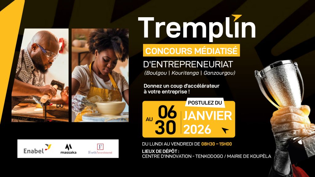 TREMPLIN est un concours d’entrepreneuriat à fort impact, structuré et médiatisé, mis en œuvre par le consortium Massaka SAS, ForthInvestment, pour le compte de Enabel au Burkina Faso.